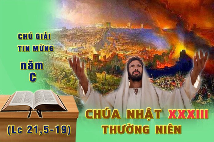 Chúa Giêsu nói với những người Do thái về thế giới thân thiết với họ nhất, thế giới của Giêrusalem, của Đền thờ, của sự độc lập Israel. Ngài muốn làm cho họ hiểu rằng, tương lai, tương lai của họ đã được thỏa hiệp và cuộc sống của họ bị nguy hiểm. Họ phải biết chống chọi lại những sự bắt bớ, cầm tù, những cáo gian, những phản bội phát xuất từ những người thân yêu gần gũi nhất của mình… Tuy nhiên, bên kia tất cả những nguy hiểm này, Chúa Giêsu tỏ cho biết rằng, ngài sẽ luôn hiện diện với những người kiên vững, không nản lòng, và luôn luôn tin tưởng vào sự trợ giúp thần thiêng hơn là vào sức mạnh con người.
